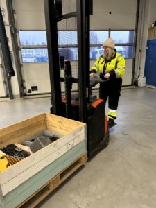 Sama vožnja s prvim viličarjom ni bila pretiroma teška, le vožnja v vzvratno smer mi ni bila najljubša. Viličarja sva peljali tako, da sva na njem stali, zraven pa obračali krmilo. Ko sva prispeli do palet, sva pritisnili na gumb, da so se viličarjeve vilice dvignile. Pobrali sva paleto, jo odpeljali na željeno mesto in odložili. Med vožnjo je pomembno, da vilice niso dvignjene, če na njih ni palete saj v nasprotnem primeru lahko pride do poškodbe. Drugi viličar pa je bil za vožnjo bolj zahteven. Deloval je na podoben način, razlika je bila le v tem, da si kot voznik na njem sedel, imel pa je več gumbov za opravljanje vozila. Naučili sva se voziti naravnost in vzvratno, poleg tega pa opravljati z gumbi. Bila je zanimiva izkušnja, vesela pa sem da sem se naučila novih stvari kakoršnjih si nisem mislila, da se kdaj bom.