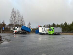 Gradia have a lot of different places where the students can drive and learn. Today our teachers told us that we’re going with our schoolmate to see another place named Gradia Lievestuore where they are spending their school time. When we arrived we saw the students driving trucks. Their job was to load the containers and drive them to the other place where they can practice loading and unloading containers. They had to lower the truck so they could unload the container and then load them again. They had to do it a few times. Students did everything alone, the teacher was just watching from the car so that nothing would go wrong. Here teachers trust their students a lot.