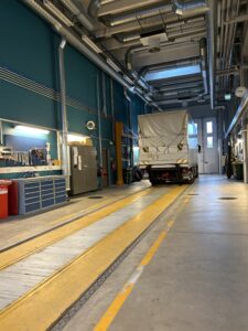 When the students finished their job, we went to see inside of the building where the students are learning theory. They have an interesting rule there, you have to wash your shoes before you go inside. We went to look around and saw truck workshop. Auto mechanics were there repairing the trucks and after that we went to see the warehouse where they have all of the pallets. After we saw everything there we went back to Gradia to have a lunch, play a little bit of stimulators and this is how our school day finished. Today we saw a lot od new things and I can’t wait to see more.