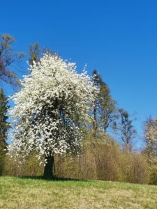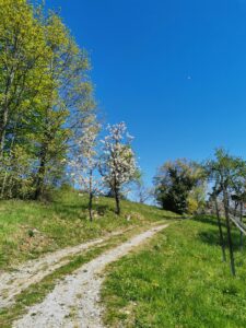 As soon as I came back, I was hit by the cold weather. Just standing and waiting for a bus to school was enough to get me sick and cool my fingers stiff! It’s not fun being sick that soon after I come back, but one must get over it. Sickness or not, what I am very happy about is that I can go on walks in Kamnik. I can go at any time of the day, without fear of getting lost and the greenery is soo pretty. Speaking of greenery, just like I wrote in a past blog, about missing Zabrezje, I went there and went for a walk. Oh how i missed the vast forests and vineyards and as a bonus, cherry trees are in bloom!