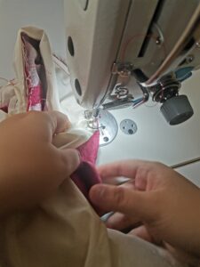 I STRONGLY DISLIKE this process, I always get soo confused hot to turn the sleeve through the hole and then turn the fabric to make a seam……Im confused just writing about it! Eventually, after a few tries and lots of correcting, I did it, i made the sleeve seems! Now it was time to do the final ironing and plan the holes for the front.