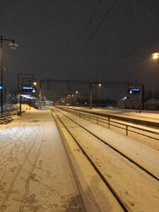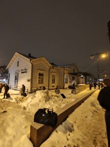 After that, we boarded the train to Mikkeli, which had a special dining coach with a café and some tables, which we checked out. Quite impressively, they even had draft beer. After the two-hour train ride to Mikkeli, we took a taxi to our apartment, which cost €18.30 even though we had a lot of luggage.