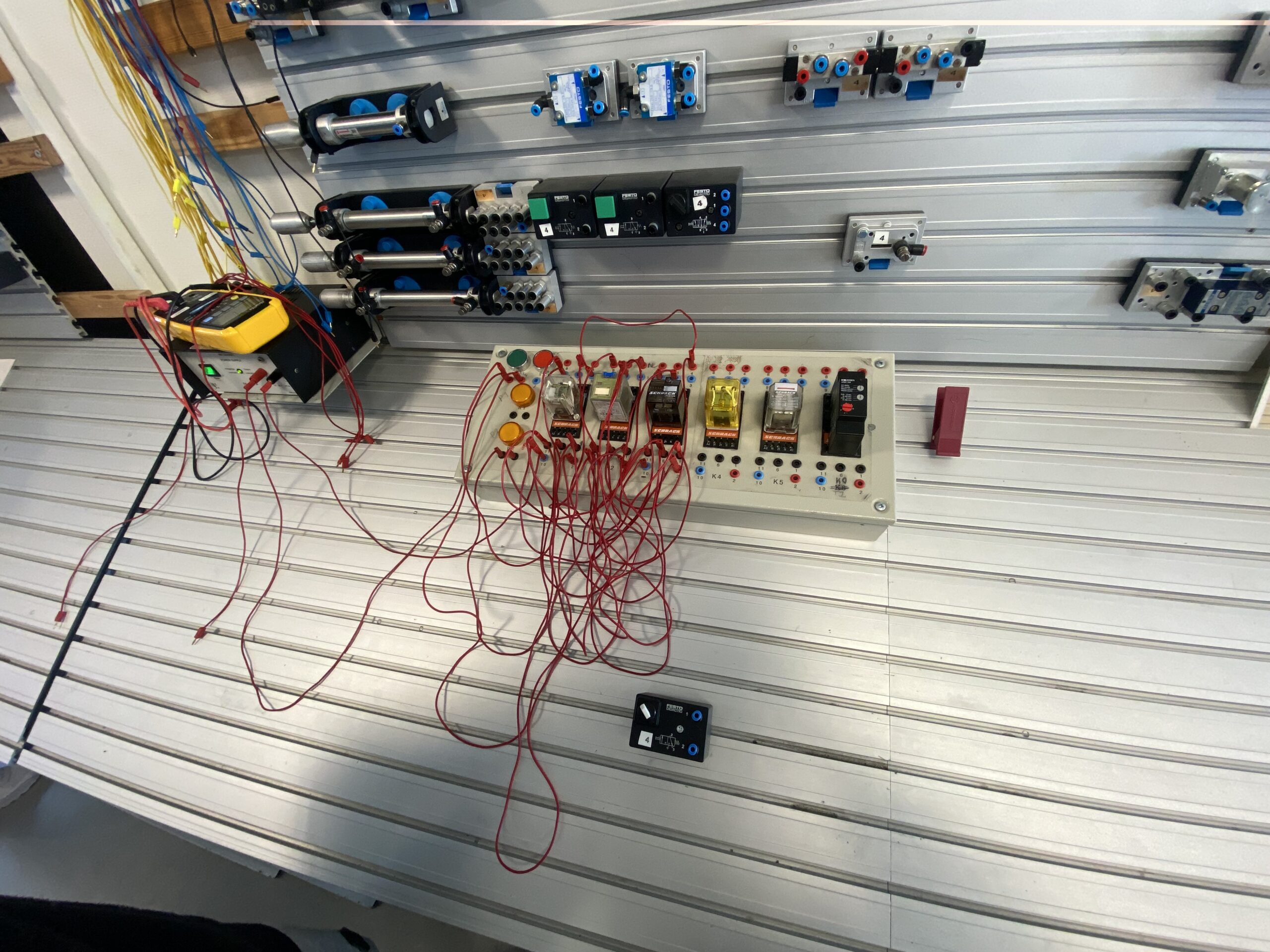 Na šoli EUC syd. Dobili smo mapo polno listov z različnimi vajami, pred vajami pa so bili zapisani teoretični zapiski, ki so nam pomagali pri povezovanju batov in ventilov. Najprej smo na liste začeli reševati naloge katere so se dokaj lahke, vendar s stopnjevanjem težavnosti je bilo potrebno vezje tudi sestaviti. Pnevmatski sistem se največkrat uporablja v živilski industriji, saj za delo ne potrebuje olja, kateri bi lahko škodovali hrani, če bi prišlo do okvare in bi začelo puščati. Pnevmatski sistem je en velik del mehatronike, katerega smo se učili tudi v šoli.