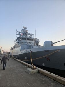 Kasneje smo se povzpeli na razgledno ploščad, kjer smo s profesorico gledali sončni zahod. Nebo je bilo res lepo, barve so se spreminjale iz minute v minuto. Pred stolpnico na kateri je ploščad je bila v morju zasidrana nemška vojaška ladja (Rušilec).
