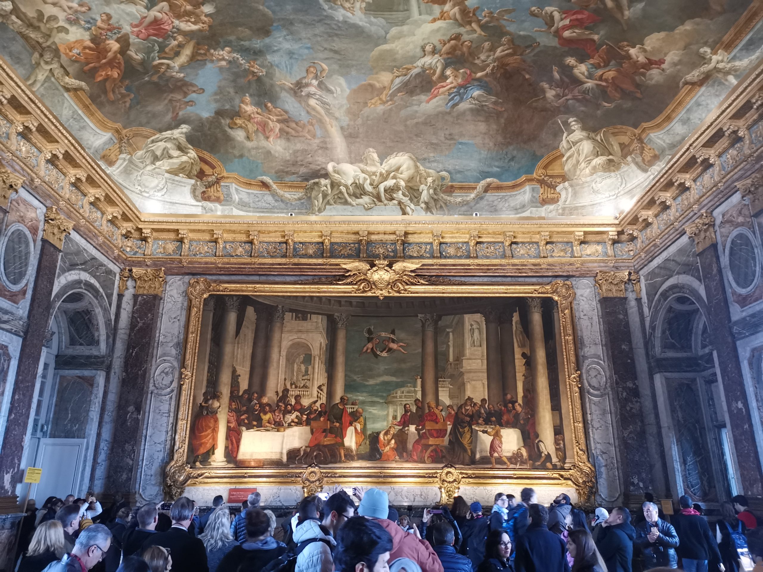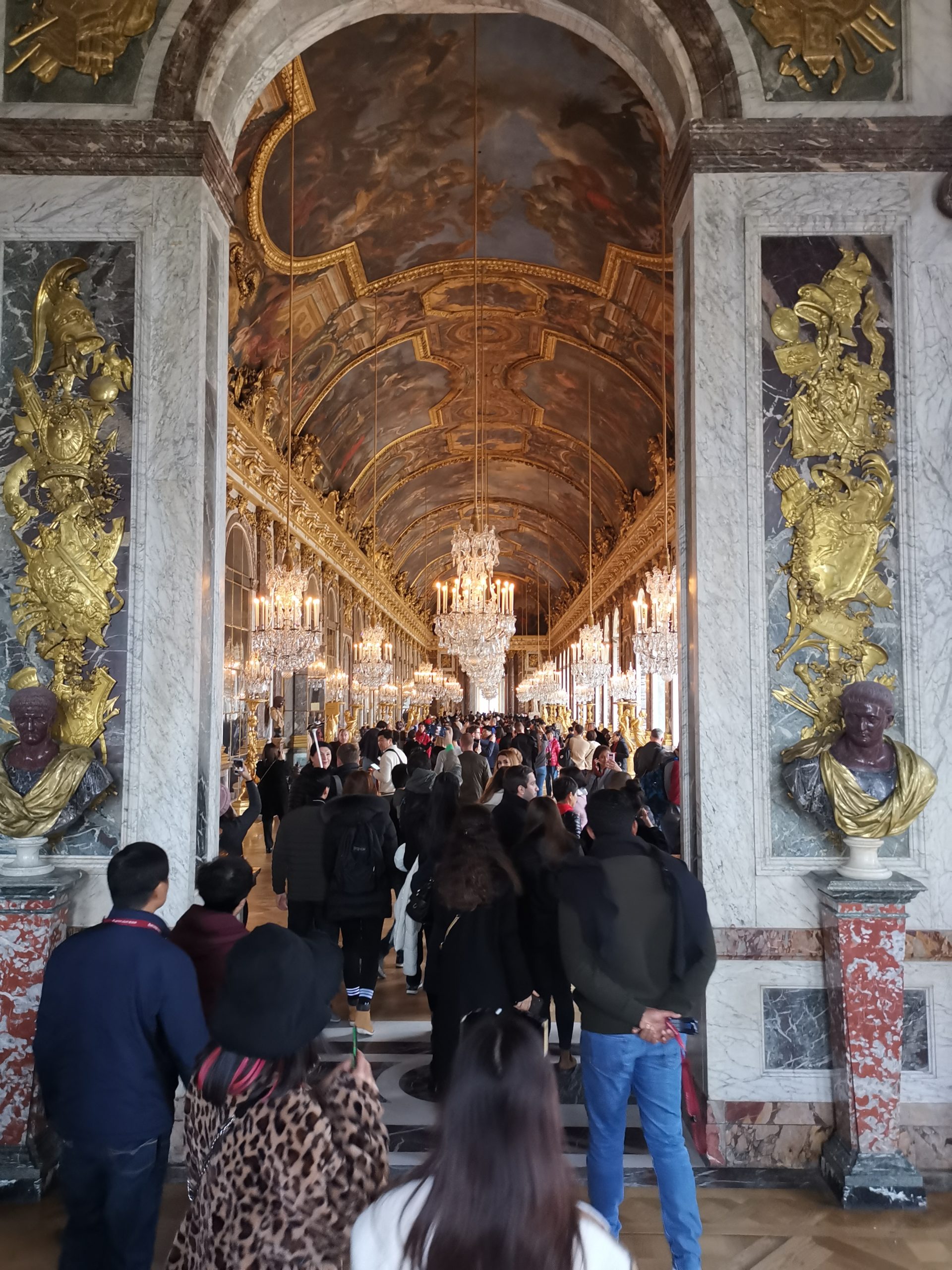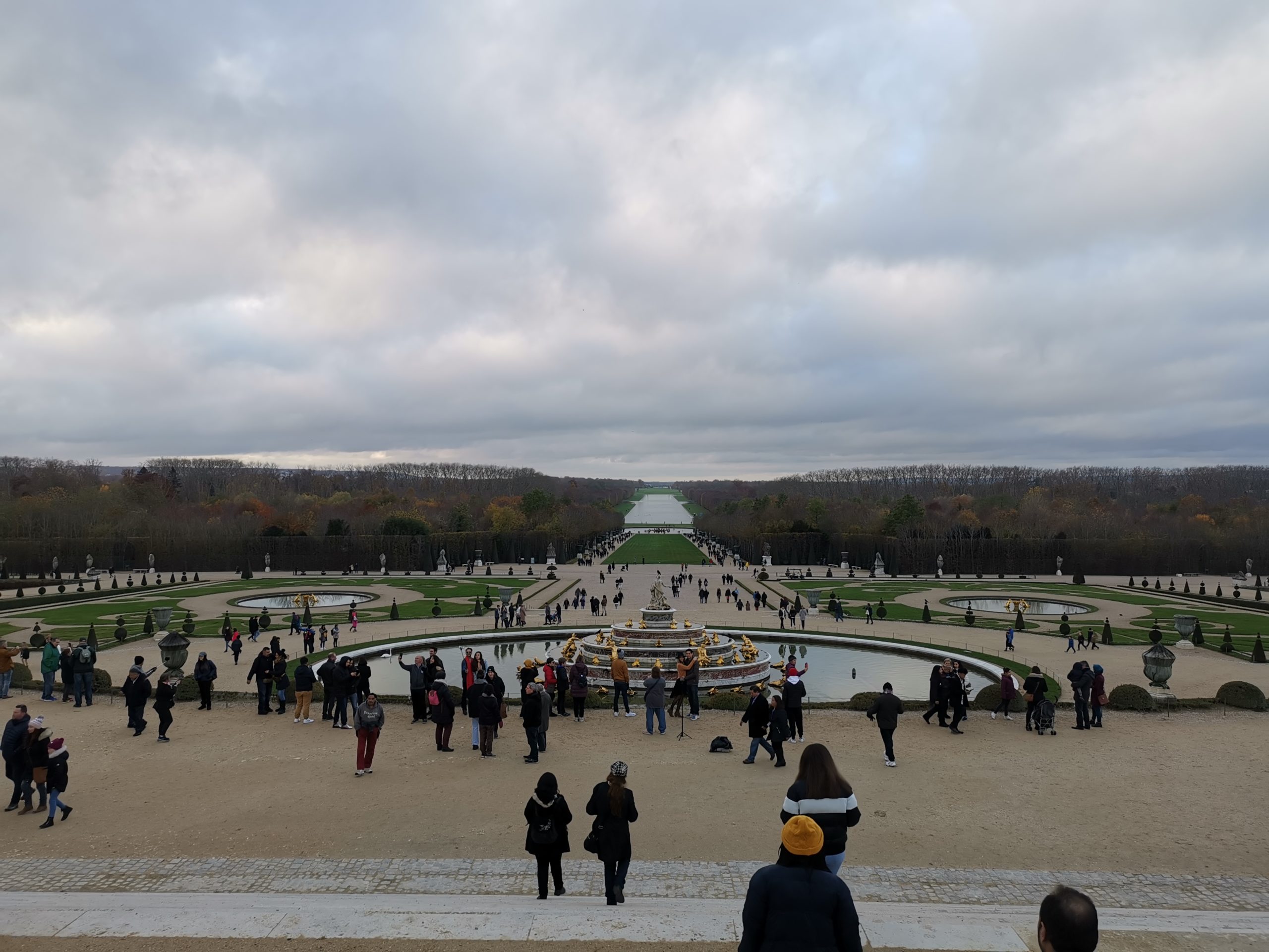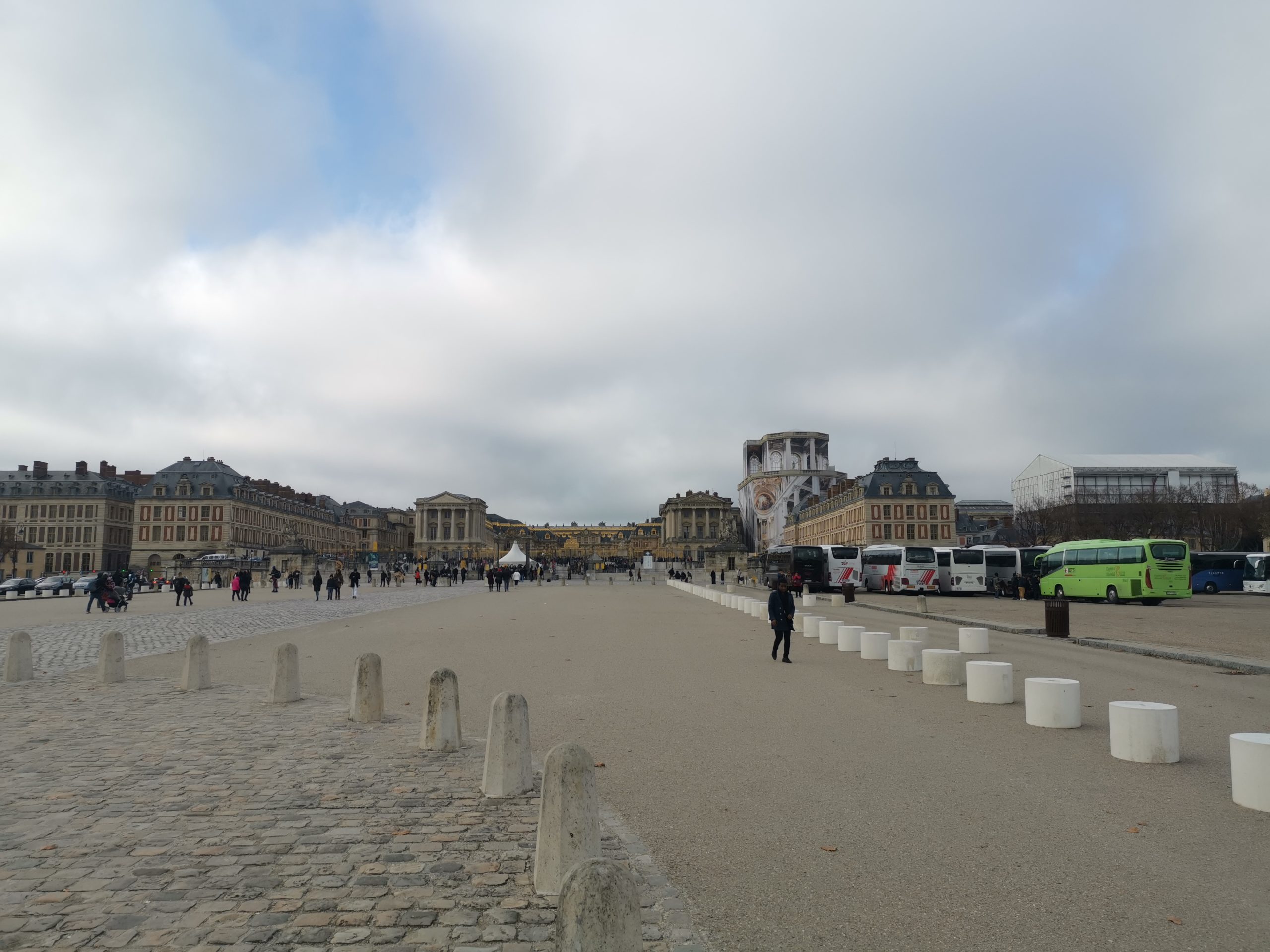 Zadnji vikend sva se odločila, da obiščeva Versailles – natančneje palačo v Versaillesu. Najin izlet se je začel že v zgodnjih jutranjih urah – ob 11.00 sva vstala iz postelje ter šla na zajtrk, kjer smo se z najinim profesorjem pomenili, katera pot je najboljša ter najhitrejša pot. Seveda smo šli skupaj s profesorjem. Po zajtrku smo se vrnili v bivalne prostore, kjer smo se uredili in pripravili za pot. Ob 1.00 smo bili vsi pripravljeni – z AirPodi v ušesih ter z nasmehom na obrazu smo se skupaj podali na avtobus številka 272. Prestopili smo na tramvaj T2 in se vozili približno 20 minut. S pomočjo Googla smo našli pravi vlak, ki nas je pripeljal skoraj do palače. Uporabiti smo morali še avtobus številka 14. Voznik je bil zelo prijazen azijski človek, ki nam je z glavo nakazal na kateri postaji moramo stopiti dol z avtobusa. In prispeli smo – Palace De Versailles. Palača je bila tako velika, da sem moral skoraj vklopiti panoramski posnetek na telefonu, da sem jo lahko slikal.