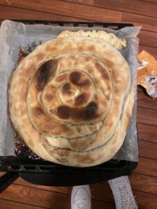 S profesoricami in dijaki smo se odločili, da si bomo izmenjali tradicionalne dobrote naših držav. V sredo sva z Zojo šle v trgovino po sestavine in z težavo našle najbolj osnovne sestavine potrebne za joto, belokranjsko pogačo in štrudelj. V četrtek smo nato v naši skromni hotelski kuhinji začele z pripravo slovenskih okusnih jedi. Zoja je skuhala joto, jaz sem spekla 2 vrsti pogač in skupaj pa sva naredili 2 jabolčna štrudlja. Erisa in Valerija sta nama pomagali s sestavinami in pri pospravljanju. Končale smo pozno zvečer, in vesele ter zgarane od dela ugotovile, da je v stranišču izza kuhinje poplava. Cev povezana z lijakom, kjer smo očistile posodo, ni bila povezana z drugo cevjo, zato je imela voda prosto pot in tekla v luknjo v tleh. Voda je hitreje tekla, kot jo je luknja požirala in na tleh je bilo polno vode. Mogle smo poskrbeti za vodo, da ne bi prišla do kuhinje in se srečala z elektriko. Končno smo vse opravile in spakirale hrano v aluminijaste posodice, da jo lahko naslednje jutro samo naložimo v vrečke in odnesemo v šolo. Ker seveda nikoli ne sme iti nič po planu, so se nam 2 posodice jote med potjo razlile. Z Zojo sva bile precej žalostne a na koncu se je izkazalo da sta ostali dve posodice še preveč. Začeli smo z slovensko hrano. Jota ni bila nikomur prav preveč všeč, kar je razumljivo saj nismo imele slovenskih sestavin in ker je jota kar težka hrana. Štrudelj in pogačo so z veseljem pojedli, nekateri so si jo celo vzeli seboj domov. Elja naš sošolec, me je prosil za recept za štrudelj in mi obljubil, da mi pošlje sliko kako mu bo uspel. Nadaljevali smo z finsko hrano. Njihova hrana je precej drugačna od naše. Prvo smo poskusili njihovo verzijo goveje juhe, ki mi je bila precej okusna. Nadaljevali smo z čokolado ter različnimi vrstami bombonov, ki jih nisem preveč marala. Poskusile smo tudi več vrst kruhov in namazov. Na koncu pa so nam postregli jed Mamma, ki smo se jo vse bale saj je zgledala res neokusno. Motile smo se, skupaj z vanilijevo kremo je bila precej dobra. Dan smo zaključile v družbi sošolca Elje, ki se nam je pridružil na kavi v našem stanovanju. Drug drugega smo naučili par slovenskih besed in si izmenjali par nasvetov glede šole.