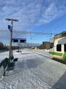 Zjutraj smo se s puncami zbudile in se kljub veliki utrujenosti, odločno pripravile in odšle na železniško postajo. Plan je bil preprost. Odpotovati v glavno mesto Helsinke nato pa »YOLO«. Usedle smo se ob velikem oknu in opazovale prelepo zasneženo okolico. Tik pred mestom so tirnice vlak vodile čez jezero. Čeprav je bilo jezero zaledenelo je bil pogled čudovit in samo predstavljale smo si lahko kako lep bi bil šele poleti. Prišle smo na cilj. Ogromna železniška postaja, kot s filma Harry Potter. Odločile smo se, da prvo najdemo Starbucks in si po dolgem času privoščimo dobro kavo ter razmislimo kako bomo izkoristile dan. Morem priznati, da si nismo nič organizirale »haha«, vse je šlo spontano. Našle smo muzej Sinebrychoffin taide museo, ter se po premisleku odpravile v notranjost. Presrečne smo bile, ko smo ugotovile, da je ogled zastonj zaradi nadaljnjega odprtja. Razstava pohištva in slik je bila čudovita. Zelo so me pritegnili detajli na lučeh in pohištvu. Muzej smo zapustile z nasmehom, ki ga je hitro odpihnil močen veter. Zavetje smo našle v trgovskem središču, kjer smo prebile uro ali dve. Nato se nam je začel oglašati želodec, kar je pomenilo, da je čas za kosilo. Zelo nam je zadišala italijanska kuhinja in hitro smo našle cenovno ugodno restavracijo. Sicer je bila daleč a za dobro pasto bi naredile vse. Zoja si je naročila pico, jaz in Erisa pa sva hoteli biti bolj dami in si naročiti  testenine v beli, ter rdeči omaki. Napaka. Hrana je sicer prišla zelo hitro, Zojina pica je dišala in izgledala božansko, medtem ko najina pasta… no ja ni. Testenine niso bile dovolj skuhane in omaka je bila zelo neokusna. A to nam ni pokvarilo razpoloženja. Pojedle smo kar smo lahko in se še vedno malo lačne odšle sprehajat ob morju. Naredile smo tudi par lepih slik. Spet nam je zadišala hrana. Tokrat palačinke. Odpravile smo se na lov za njimi in jih našle. Žal ne ob pravem času, saj jih strežejo samo ob jutranjih urah. Vseeno smo si privoščile sladico in jo z užitkom pojedle. Nato smo se s polnim trebuhom sprehajale po mestu in si ogledovale njegove znamenitosti. Helsinki je v primerjavi z Lahtijem zelo lepo in veliko mesto. Bilo je že pozno in čas je bil, da se odpravimo domov. Zaradi mrazu so se nam že skoraj spraznili telefoni tako, da smo morale pohiteti. Doma smo vse hitro odšle pod topel tuš in z veseljem na obrazu zaspale v topli postelji ob misli na lepo preživet dan.