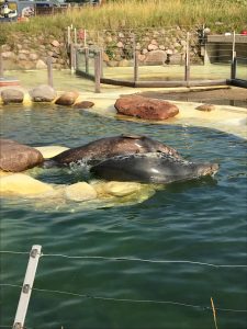 Tudi danes smo imeli pester dan, sploh dijaki, saj smo morali predstavljati šolo, Slovenijo in naše delo po razredih, a smo se kar dobro znašli. Že pohvala naših dveh profesorjev je bila dovolj in je poplačala naš trud. Po šolskih dejavnostih smo se odpeljali na sever, v kompleks kjer skrbijo za tjulne. Tam prebivajo ranjeni, ujeti in drugi. Bili smo priča kratki predstavitvi o samem centru, lahko smo si ga tudi ogledali. Hranjenje in zabava, izvajanje trikov, učenje je bilo zelo lepo opazovati, saj so to zares lepe živali. Krenili smo proti najbolj pričakovani atrakciji tega tedna. Hoji po morju. Tukaj sta plima in oseka bolj izraziti kot pri nas, saj je upad vode kar nekaj metrov. Ob tem pojavu nastane nekaj neverjetnega. 11 kilometrov dolga ravnina brez vode, samo blato. Pričakala nas je res enkratna vodička, polna znanja in talenta kako ga predati naprej, zato smo na ogledu res uživali. Sezuli smo čevlje in bosi zakorakali po vlažni mivki posuti s školjkami in drugimi prebivalci morja. Kopali smo jame in preizkušali meje težnosti in bilo je res enkratno. Večer smo z Adamom in Rokom preživeli v raziskovanju manjšega mesteca in pregledovanju trgovin, večino enakih kot v Sloveniji, le dražjimi.