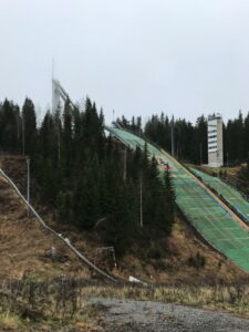 Sobota je minila precej sproščeno, saj še nisva imela jasno načrtovanega dneva. Po zajtrku in kavi, sva čistila najini sobi ter oprala oblačila. Odločila sva se obiskati lokalno smučarsko skakalnico v Jyväskyli, ki se imenuje po znanem skakalcu, enem iz med najboljših na Finskem; Mattiju Ensio Nykänenu. Prijetna vožnja (s kolesom) v sončnem zahodu malo po 15. uri, je bila hitro mimo, saj sva hitela kuhat. Ne ustvarjava kulinaričnih presežkov, vendar sva oba zadovoljna s skuhanim kosilom ali večerjo. Tudi najin hladilnik se pridno polni, tako da lačna zagotovo ne bova. Zvečer sem odšel še na zrak v mesto in se sprehodil ob jezeru, saj imam vedno, ko hodim mimo občutek, da sem na dopustu in ne v šoli. Odigrala sva še nekaj partij remijev, obrekovala znane in neznane ljudi, nato pa odšla vsak v svojo sobo gledat filme.