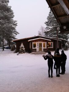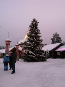 Preostal nam je še zadnji teden izmenjave na Finskem. Da smo čim bolj izkoristili prosti čas in znamenitosti države, smo se odločili, da obiščemo Božičkovo deželo. K božičku smo se odpravili z letalom, saj se bi z vlakom vozili 10 ur ali več, kar bi nam vzelo precej časa in še prenočišče bi potrebovali. Tako smo se ob enih zjutraj odpeljali z vlakom iz Lahtija proti letališču v Helsinkih. Vzleteli smo okoli pol osmih zjutraj in ob devetih smo že prispeli.
