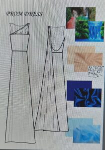Of course that isn’t the only thing I have learned. Our teacher here showed us the program on the computer, where you can draw clothes and add some pictures of your inspiration; basically you can do whatever you want in this program. I really like Adobe Illustrator (that is the name of the program), it is fun to create on it and it’s something totally different then if you do everything by hand. I try to make my dress that I will sew here. Then I still had some time so I even made my prom dress, which I’ll make in school in Slovenia.