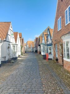 We went on a tour of the town of Tonder on Tuesday around eleven o’clock. The two Danish professors showed us around the church and told us a few words about its origin. Not far from the church, we saw a statue of Profous, the warden of the prison, and took a group picture next to it. While walking through the streets, we saw that most of the houses do not have curtains and have small clay houses on the windowsills, which block the view of the interior of the house for passers-by. Facade brick is very characteristic of Danish architecture and has been used for 900 years. The professors showed us where the swimming pool and the gym were, and then we returned home. In the city, I noticed that it is very similar to Ljubljana, as it has old, narrow cobbled streets.