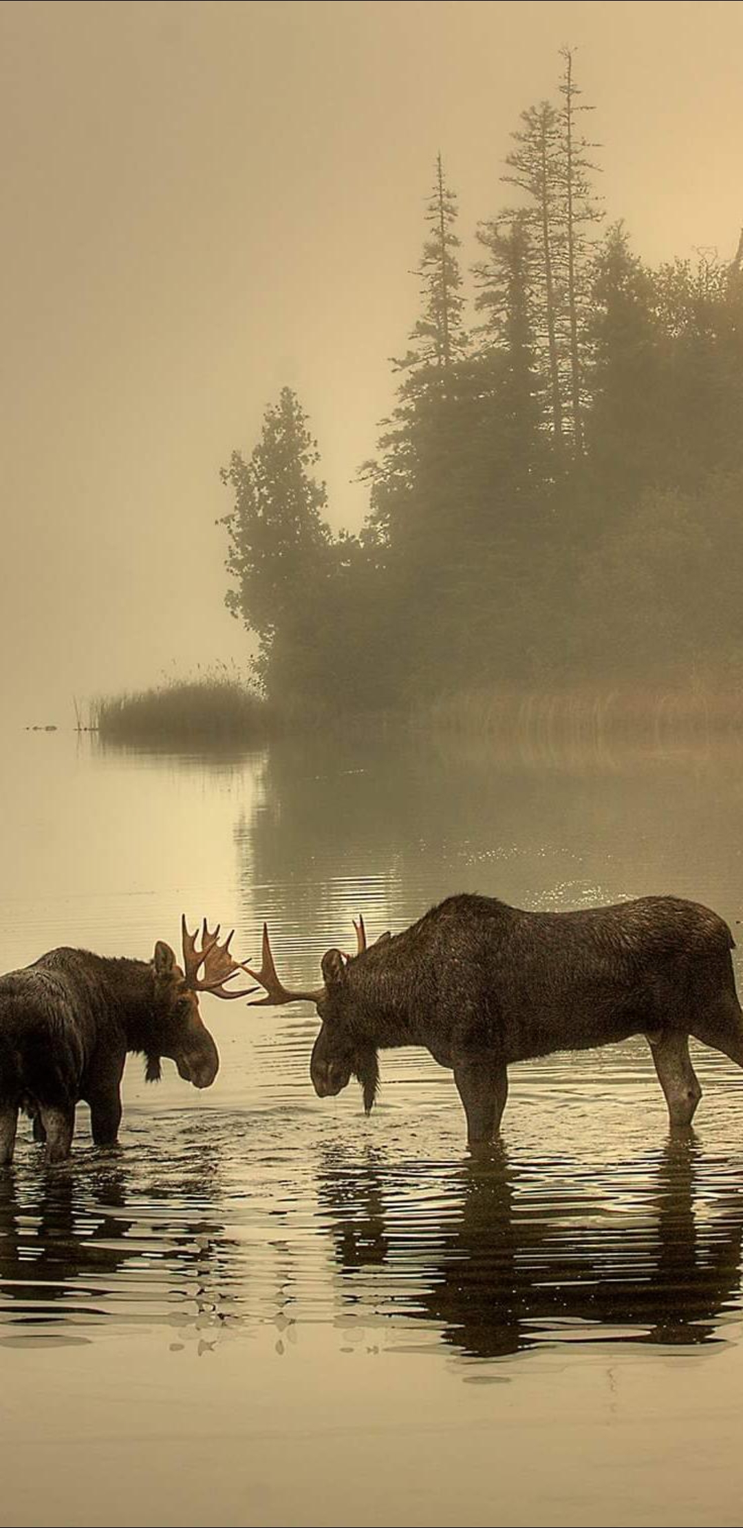 No one denies that the moose is a true giand. Although this king of the forests may not look graceful with his long legs, he can use them to fend off a pack of wolves. Moose learn to swim within a few days of birth. They were seen swimming for miles and diving up to six metres deep to eat aquatic plants.