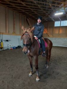 Our guide Jura from Vaasa, which is a city on the west coast of Finland and who is also a teacher at Vamia School (Vamia is a multi-disciplinary vocational education provider with over 7,000 students every year) took me on a trip to a horse farm. His friend Suvi rents a box 17km away from the center of Vaasa. On Thursday, March 31, 2022, at 5:00 pm, Suvi picked me up in front of the block, i took my work clothes with me, as I helped her clean the drain and the box. When we got to the riding club, my gaze went straight to cleanliness and tidiness, as it was already visible from afar that cleanliness came first. After the work was done (cleaning the box) I was helping her groom the horse and get him ready to ride. We took the horse to the arena and warmed it up. This was followed by horseback riding and various exercises such as horseback riding, galloping and relaxation. She told me that this mare I rode won the race in 2020 and reached second place at horse show in 2021. She also showed me the places where they store horse food, the place where they shower horses and the pantry for saddles and bridles.