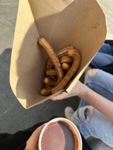 povaljane v sladkor in cimet in navadno jih pomakajo v čokolado. Prvič smo jih poskusili v Barceloni, vendar nismo bili najbolj navdušeni nad njimi, kasneje pa smo jih poskusili v Zaragozi in bili pozitivno presenečeni, saj so bili boljši kot v Barceloni.