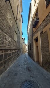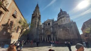 The streets in Toledo are very narrow and you can quickly get lost in between them. While walking through them, we got to the cathedral Santa Maria. Usually, the cathedrals have two very big bell towers, but because they ran out of money and now there is just one tower.