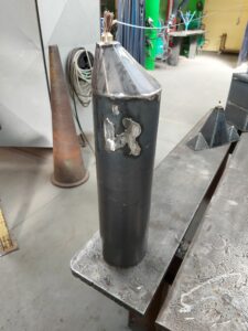 In the fourth week, I learned how to weld properly. With this knowledge, I made an Akrapovič exhaust as an oil lamp.