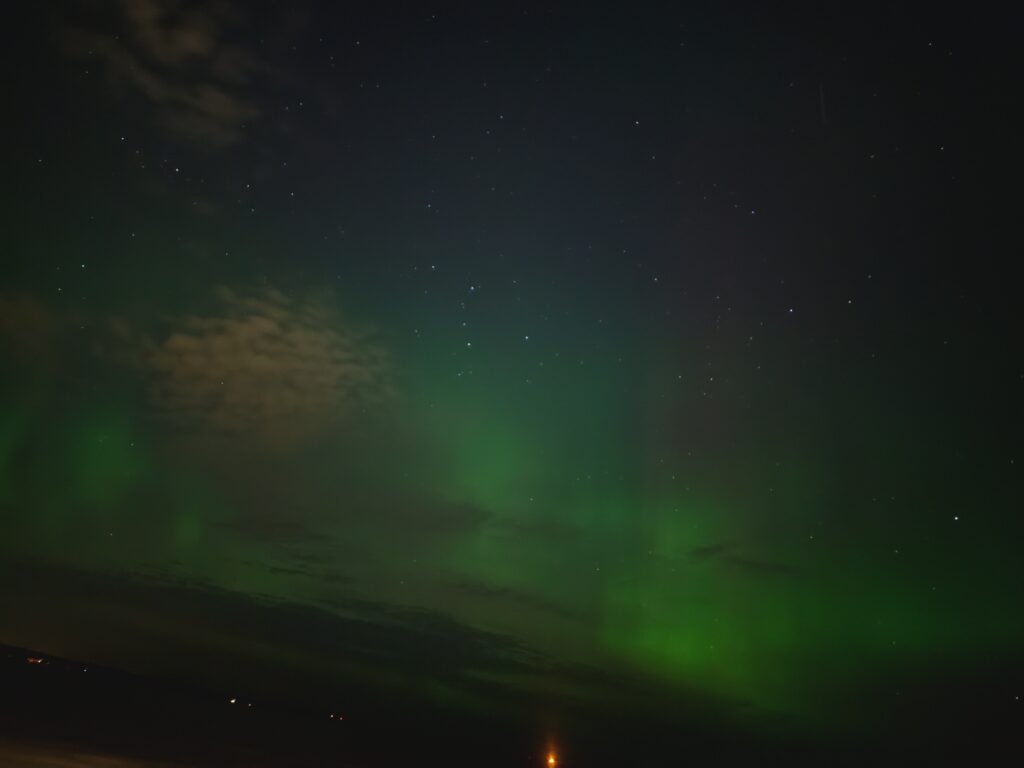 Izbral sem obalo jezera Näsijärvi – stran od mestnih luči, s širokim pogledom proti severu. Noč je bila jasna in mrzla, popolni pogoji za opazovanje. Čakal sem potrpežljivo in nato – rahel zeleni sij na obzorju! Počasi se je okrepil in za nekaj minut razsvetlil nebo v nežnih, plesajočih vzorcih.