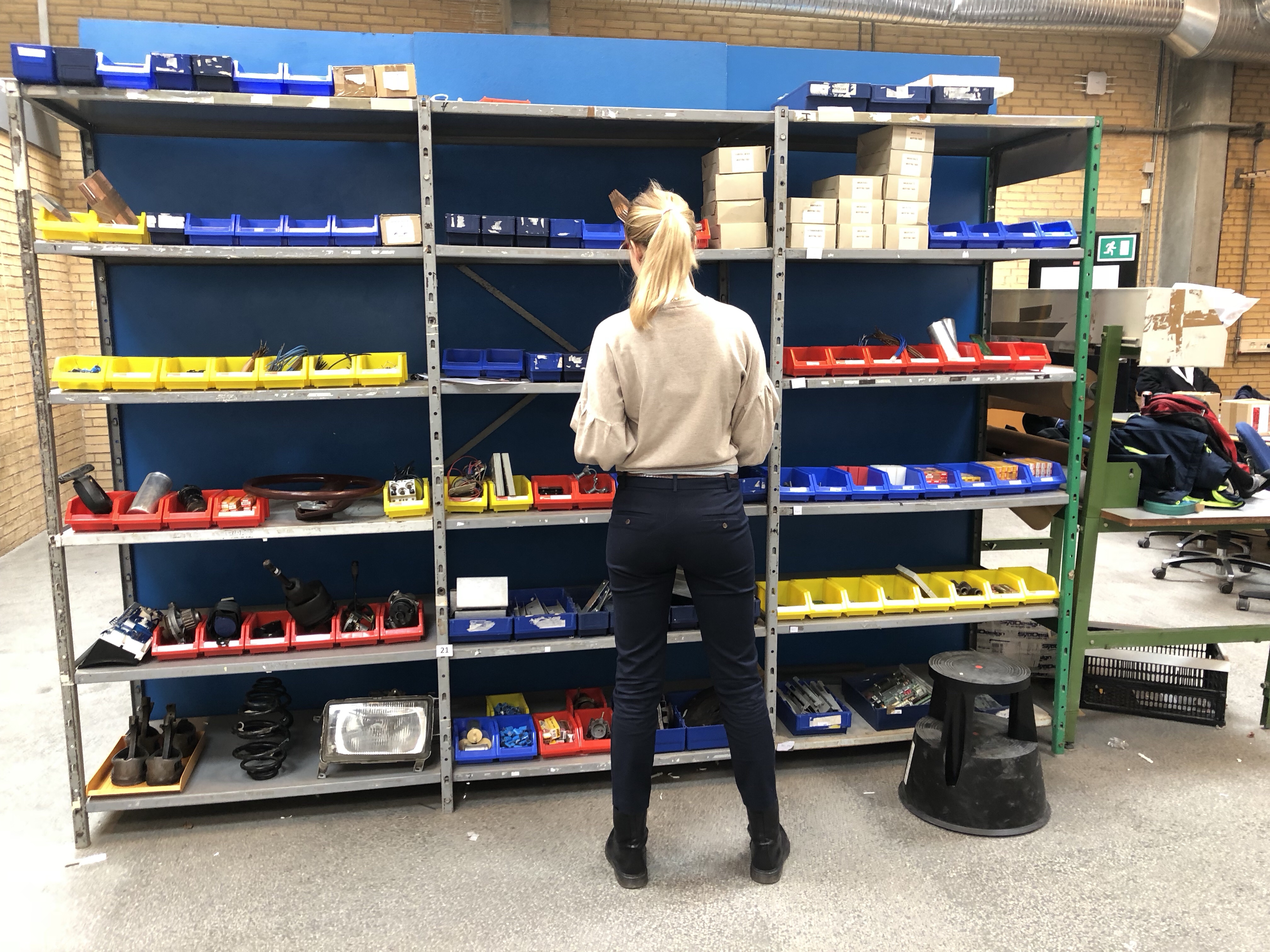 Today we finaly start with practice. We were editing storage shelfs. We had to put 40 different items on it. After we did this we had to make a table in Excel and put informations in about pocation of items, category of item etc. When we finished we had to mark every shelf with its own number.