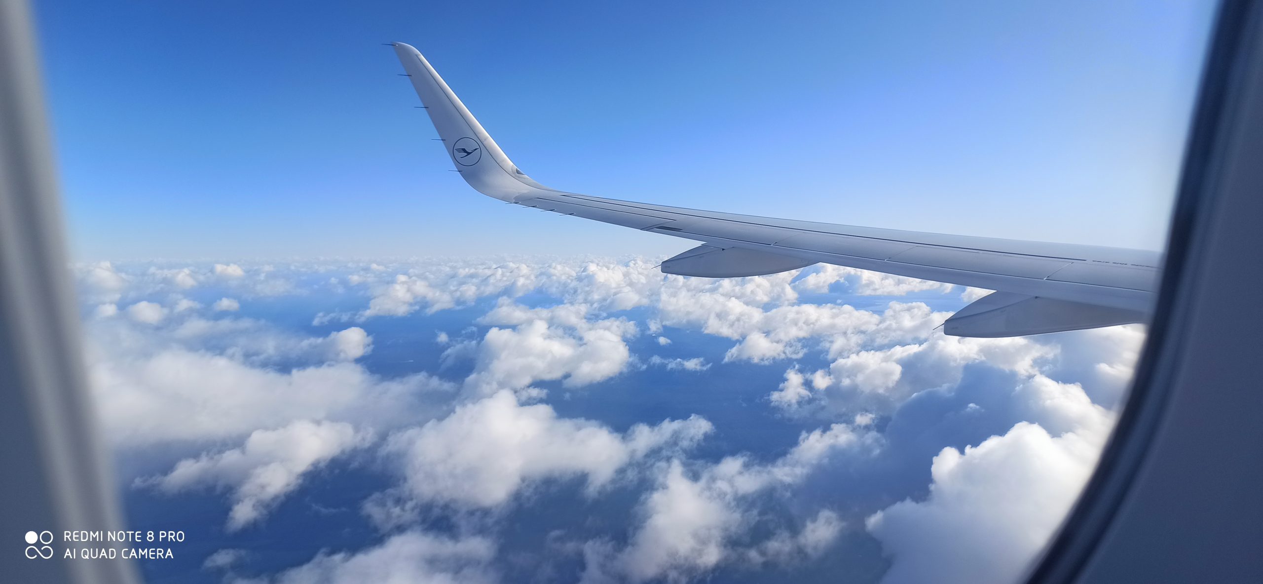 I really liked the flight from Frankfurt to Helsinki, because I was sitting at the window near the wing of the plane. The view of the outside world, from such a height, was just perfect. The sky was very blue and the clouds looked very fluffy. And all of the houses and trees were so little. You could see all of the things underneath you. On a certain height, where you could still see cars and people, I have to admit, that both people and cars looked like ants.