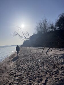 Voda je bila ledeno mrzla, a vseeno me je mikalo, da bi namočil noge. Nisem se opogumil, a zagotovo bom to storil, ko bo topleje. Sprehod po plaži je bil res sproščujoč. Zrak je bil svež, sonce je sijalo, morje pa je valovilo ob obali. Na takšnih krajih človek pozabi na vse skrbi in samo uživa v trenutku.