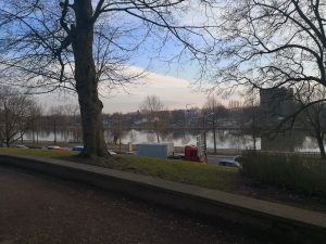 Danes se je začel nov teden in z njim novi izzivi. Ko sem zjutraj prišel v podjetje, me je tam pričakal moj spremljevalec in mi razložil plan za ta teden. Danes sem se v podjetju naučil programirati robotsko roko. Po končanem delavniku sem se odpravil domov. Odložil sem stvari, nekaj malega pojedel in se odpravil v mesto. Do mesta sem se peljal z avtobusom. Ogledal sem si reko in mestni park z majhnim zaledenelim jezerom.