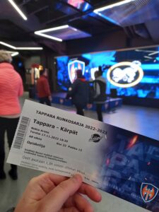 Ogledali smo si tekmo med domačim moštvom Tappera in moštvom Karpato, katero je od Tamper oddaljeno kar 500 km severno. Za naš kljub smo izbrali domačine, saj je bil z nami tudi naš profesor Tommi, kateri je strastni navijač Tappere. Res zadnja stvar, katero želiš narediti je, da se zameriš polni dvorani razgretih navijačev. Tako da je izbira bila očitna, lahko pa bi tudi rekli, da je ni bilo.