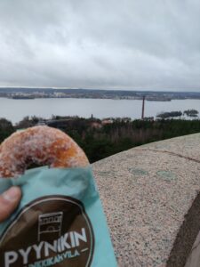 Po šoli je po nas prišel Tommi, z namenom, da kupimo vstopnice. Pred tem nam je razkazal tudi nekaj znamenitosti Tamper. Peljal nas je na njihovo tipično jed, krvavice. Katere oni, jejo z brusnično omako. Priznati moram, da me je okus prijetno presenetil, saj si nikoli nebi mislil, da to paše skupaj, kaj šele, da bi to poskusil. Potem, ko smo se okrepčali pa nas je peljal na najbolj znamenite krofe tega mesta, saj je za sladico vedno prostor. Kavarna v kateri smo jih poizkusili, ima razgledni stolp, na katerega smo se povzpeli, a zaradi Finskega turobnega vremena razgleda žal ni bilo. A vse je odtehtal sladek okus puhastega krofa ,ki se je kar topil v ustih.