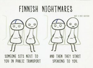 In addition, I was told that Finns are mostly very shy. Small talk doesn’t come easy to them. Quiet moments in conversations are not considered awkward. Silence merely means the person doesn’t have anything essential to say. There’s no necessity to fill gaps in conversation with chatter. On the other hand, Finns are genuine – they mean what they say.