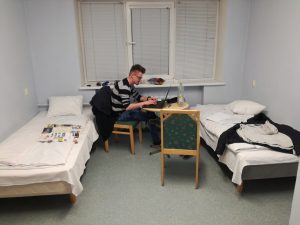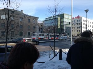 Po pristanku na Dunaju je bil kratek postanek za toaletni,ter čas za okrepčilo.Nato pa nas je čakal let vse do Tallinna.Let je trajal dobri 2 uri.Ko smo prispeli na letališče je vsak prevzel svojo partljago,ter pod mentorstvom prof.Alekseija Kazakova odšli do našega prebivališča.Med vožnjo nam je malo razkazal mesto,ter nam povedal še nekaj zanimivih podrobnosti.V prometu smo opazili tudi tramvaj,kateri so nam dokaj neznani.