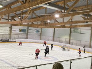 Prva tekma se začne. Ama mi pove da imajo v tej ligi “gentleman rule”, ker je veliko igralcev očetov in si ne želijo veliko poškodp. Zato je tudi finski hokej te lige zelo, zelo počasen v primerjavi z slivenskim.