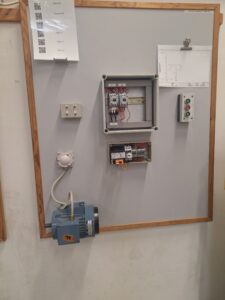 Today, we explored a part of the school where students learn how to identify problems in machines. It was something new to see all the different equipment and workstations. Each pair of students was working on their own station to practice troubleshooting.
