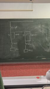 Nato smo šli na pouk elektrike, kjer smo spoznali naše sošolce. V nekoliko polomljeni angleščini so nam razložili, kaj ustvarjajo. Imeli so električno omarico, ki so jo morali pravilno povezati, da se luč prižge ob pravem pritisku na gumb.