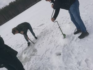 Danes smo lahko ustali malo kasneje saj smo imeli prost dan. Koordinator Seppo naj je pričakal v šoli ob 10.00 in nas najprej povabil na skodelico kave. Nato smo se odpravili v trgovinice s spominki kjer nismo našli nič primernega. Za kosilo nas je Seppo odpeljal v šolo kjer smo jedli približek sarmi kar sploh ni bilo tako slabo. Po kosilu se nam je pridružil še ličar iz sole kateri ima kočo ob jezeru kamor sta nas tudi peljala. Ko smo prispeli k koči nam je Mikka(ličar) malo razkazal nato pa povedal da bomo naredili luknjo v led da se bodo lahko kopali v vodi po tem ko se bodo segreli v savni. Luknjo smo izdelovali kar dolgo časa ker nam je debelina ledu delala kar precejšen problem. Nato je prišel čas za v savno tega dela se sam nisem udeležil ker mi savna ne ugaja najbolj so se pa ostali ki so pripomnili da je to neverjetno doživetje. Ko smo s tem opravili nas je Seppo odpeljal do supermarketa kjer smo našli dudi spominke ter si kupili kosilo. Po povratku v hotel smo si privoščili pizzo nato pa smo več ali manj cel dan počivali saj smo vedeli da ne jutri naporen dan pred nmi.