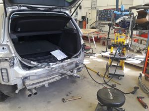 Zjutraj nas je pobral dijak in nas razpeljal po delavnicah. Po prihodu v delavnico sem takoj dobil delo. Snel sem  zadnji odbijač in nato z mentorjem poravnala zadnji konec vozila. Po končanem delu naju je  že čakalo  novo delo. Poravnati sva morala bok in prag. Še preden sva končala sem moral oditi, saj me je zunaj čakal že prevoz. Med vožnjo domov smo se vstavili v trgovini. Nabavili smo si hrano za pozno kosilo.